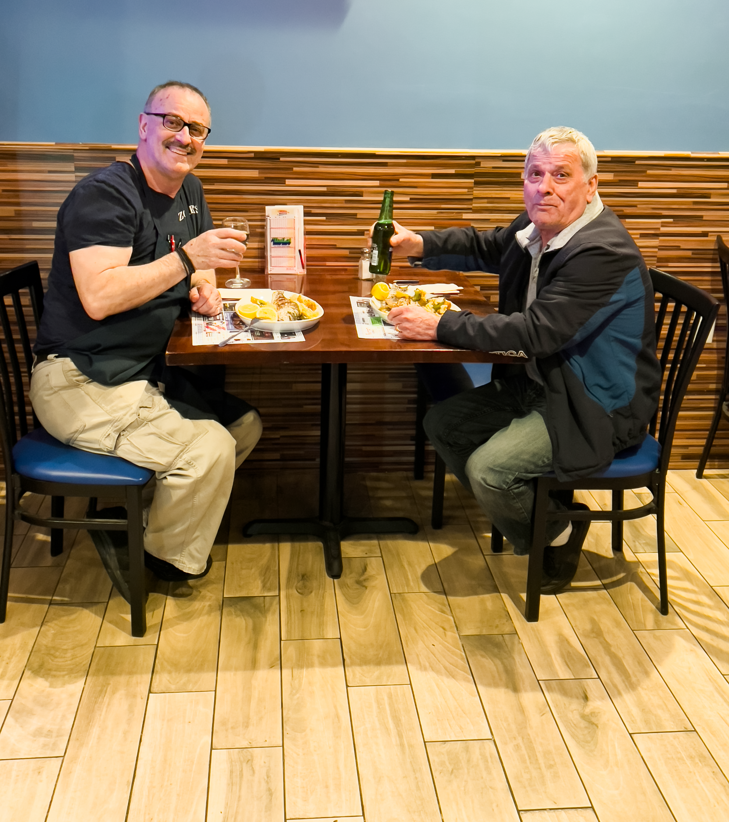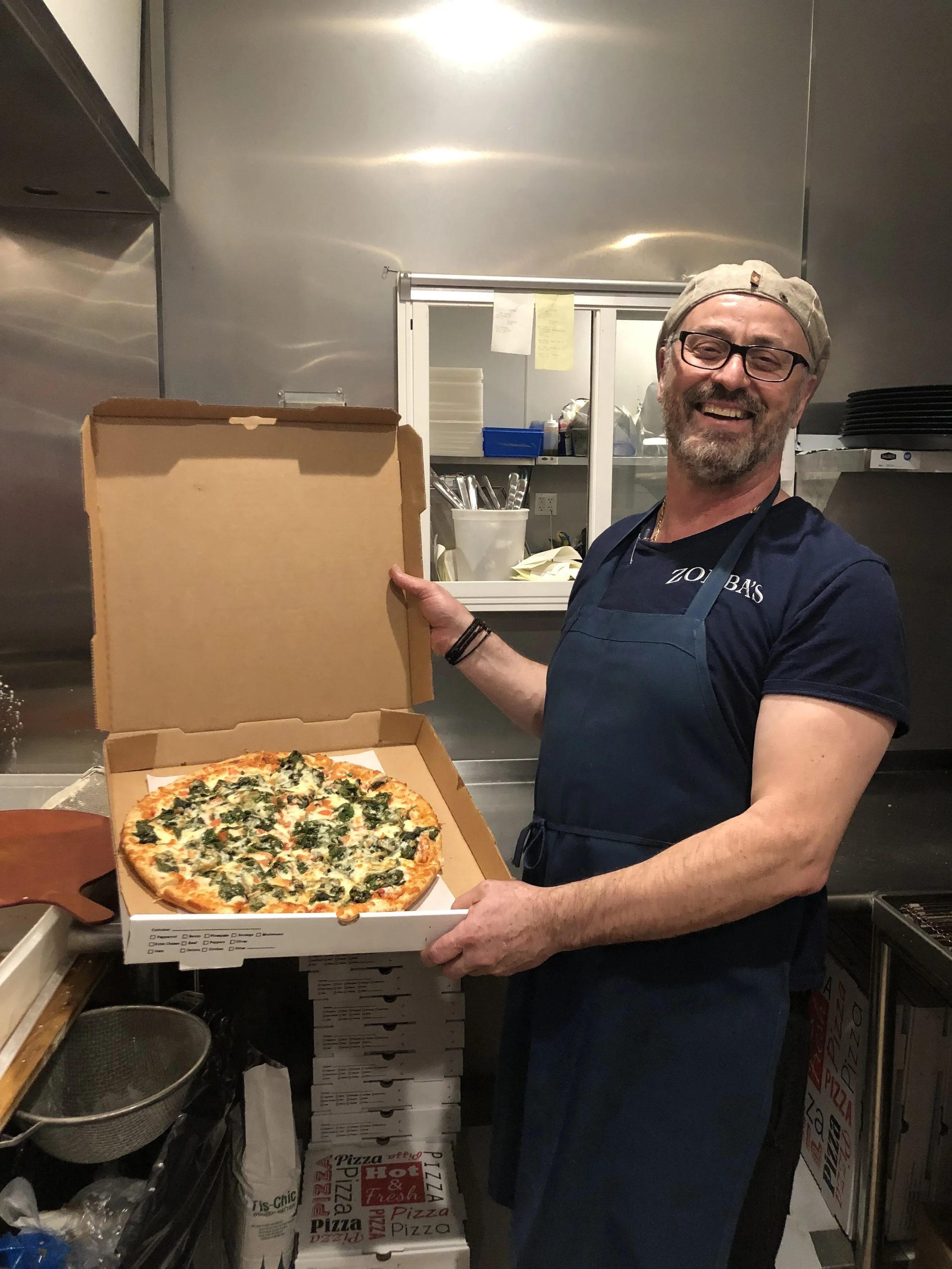 Sam is from the mountains of Greece. He started making pizza at his sister’s pizza shop in Massachusetts when he moved to the United States in his early twenties .